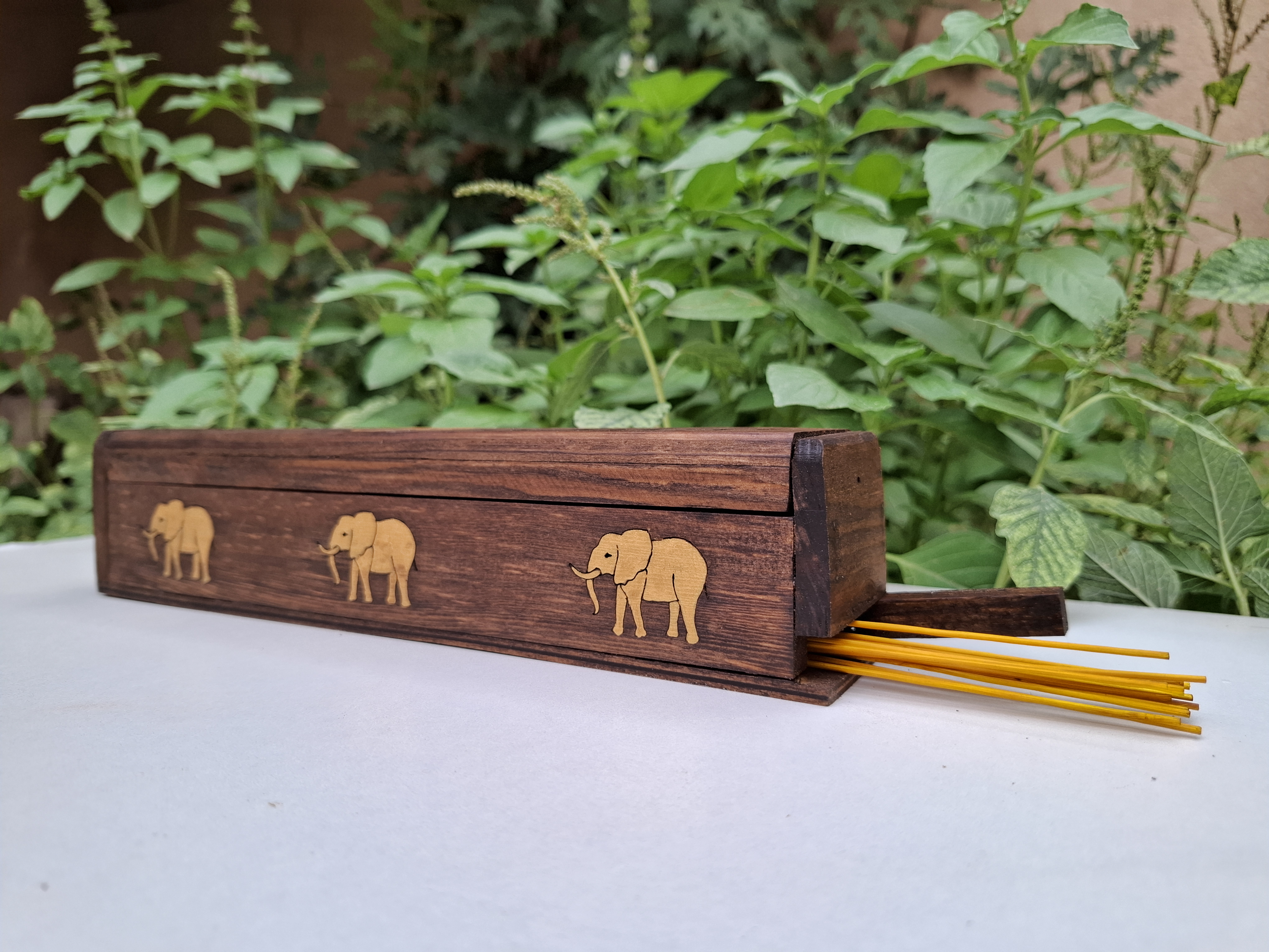 جاعودی صندوقی با انبار عود با طرح فیل که هر سه فیل با دست نقاشی شده است و چاپ نیست ک به همین دلیل از کیفیت بالایی خروجی گرفته شده است.